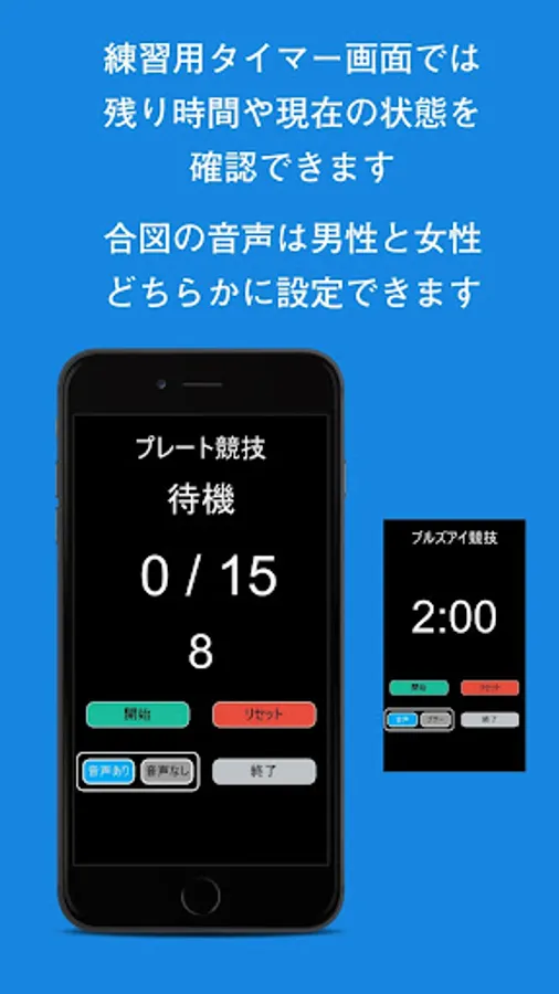 練習用タイマーは音声で開始の合図をするので、わかりやすいです。