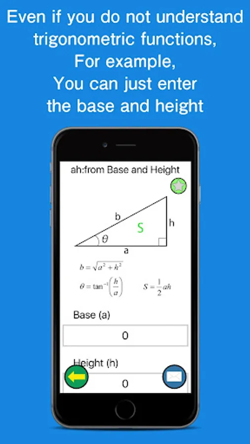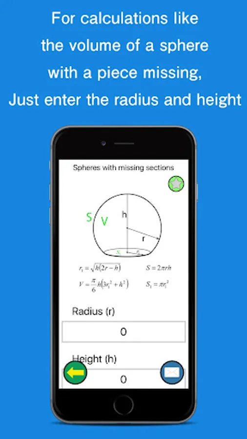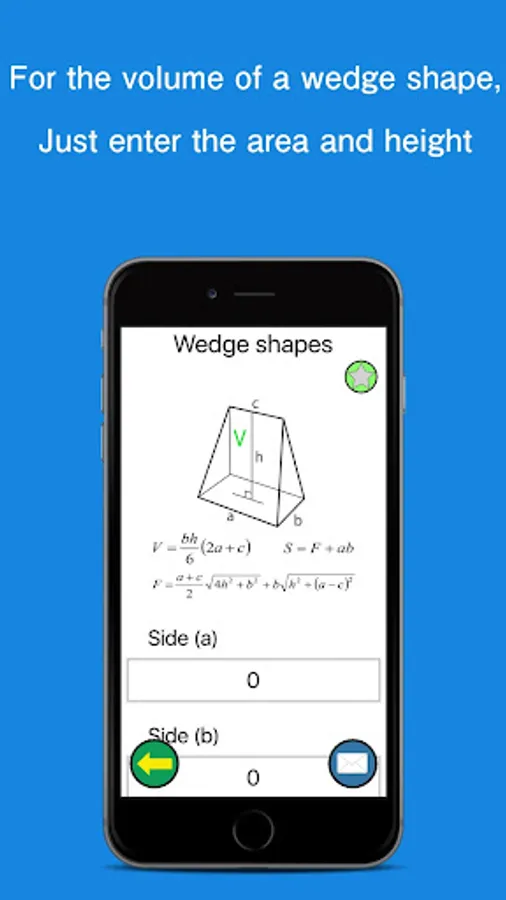 The app allows you to enter the length of the sides and height of a shape to obtain its area and volume. For example, for a triangle, you can enter the length of the sides and the height to obtain its area and perimeter; for a parallelepiped, you can enter the length of the two sides and height to obtain its volume and surface area; and for a sphere, you can use the radius to work out its volume and surface area.