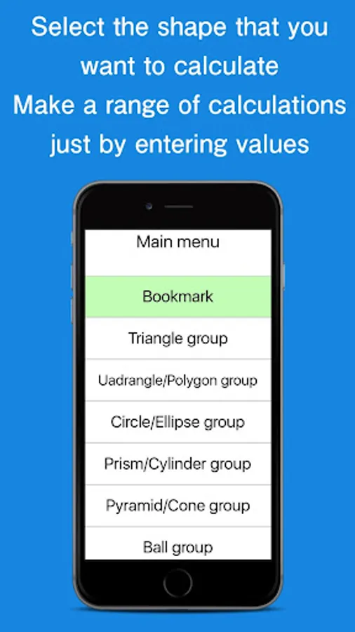 Select the geometric shape that you want to make calculations for, enter its values, and the app will then display the various calculation results.