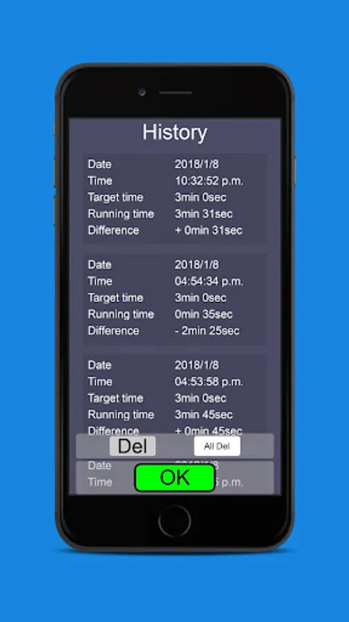 Time and the alalogue chronograph are displayed so that the remaining time can be recognized easily. Moreover, you can confirm when you executed and how long it had taken and completed by that history funcion later.