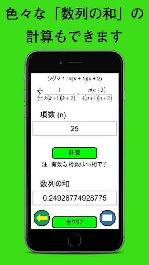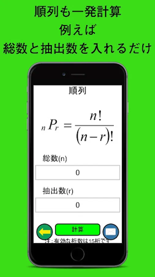 「数列・順列・組み合わせ計算機」はいろいろな数列、順列、組み合わせの計算を行う計算機です。普通の電卓としての機能はありません。簡単に等差数列の和などを計算することができます。わざわざ公式に値を入れながら計算するのが面倒、なんてときに便利な計算機です。アプリ内では一部ではありますが、公式も載せています。