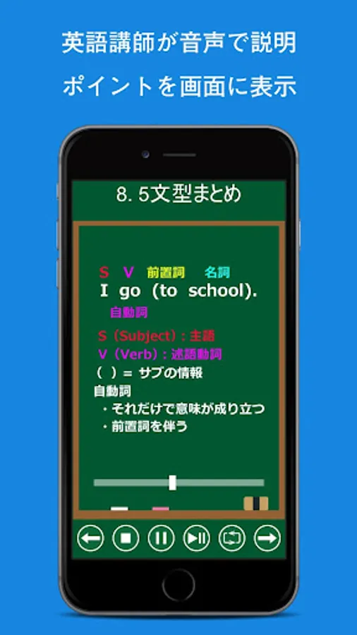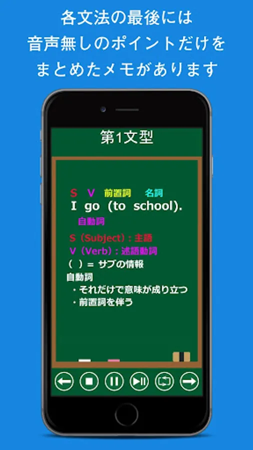さて、学校で英文法を学んだとき、とてもたくさんあって何が何だかわからない、なんて思いませんでしたか? このアプリでは覚えてもめったに使わないことなどはやりません。必要なもの、大切なことをピックアップしています。このアプリで学ぶ文法をマスターすれば、英会話力が飛躍的に向上すること間違いなしです。そして、文法を知ることで英語を読む、書く、聞く、話すことがスムーズになるでしょう。