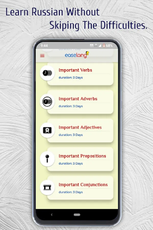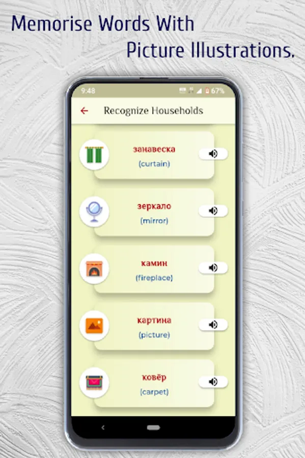 ➤ Not only Easelang provides 1500+ most used and well researched words in Russian language but also provides vocabulary with vivid pictures and correct pronunciations. So your mind can absorb these words effortlessly.