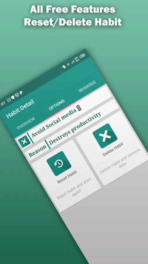 The reset habit tool within the app can give user a chance to reset habit and start from the first day again. If some one fails in quitting bad habit he can rest habit and start milestones again. The number of reset habit counts will be shown in the quit habit overview. If someone fails to achieve good habits he can reset habit and work on goal again.