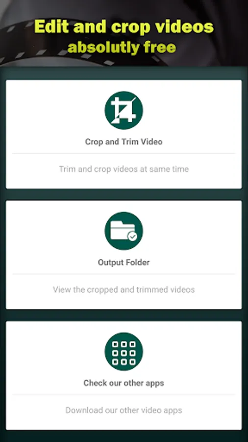 App has a video cropper that can change size of video. The video cropper is used to crop video. The video cropper provides user with free video crop facility. Using video cropper video can be changed into different lengths. The video cropper is quick and efficient to crop video. The video cropper changes the video size according to user selection. The video cropper crop video allowing the user to select size frame freely. The video cropper crop video and provides quality video. Using VidCrop you can crop video and receive high quality output. Video Cropper is lite tool to crop video.