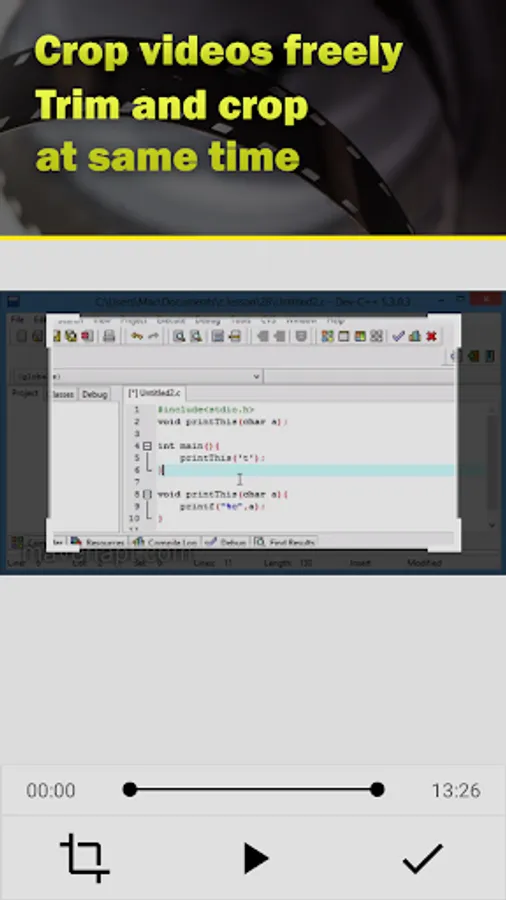 VidCrop is a video resizing that can crop video and trim video at same time. VidCrop is a light weight video editor used for simple video editing features. This is a video editor, video cropper and video trimmer at same time to provide fast and efficient video editing.