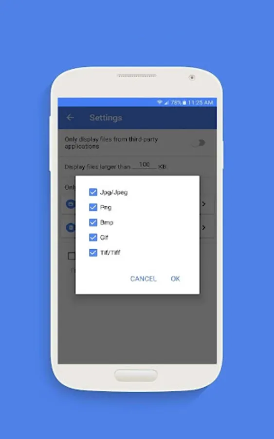 For pictures and videos, there are 4 options available in Settings: Only display deleted items, filter the files by size, file types and date.