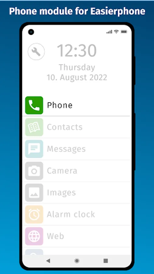 Phone for Easierphone is designed to be used with the Easierphone app. Phone for Easierphone can also be remotely edited with the Easierphone assistant app.