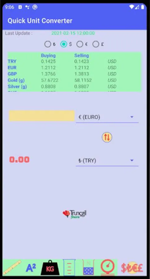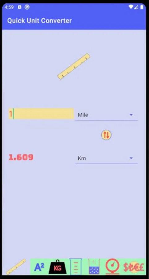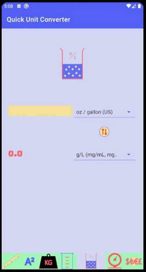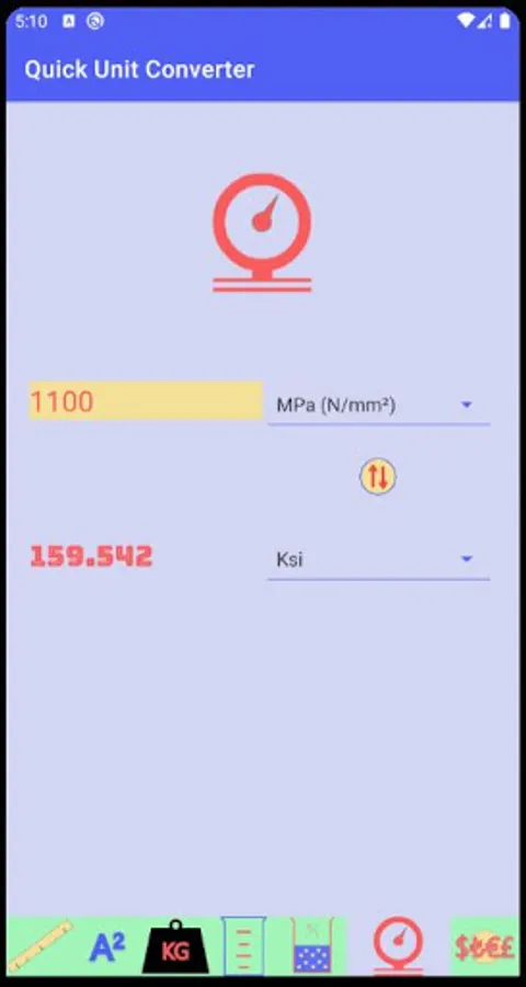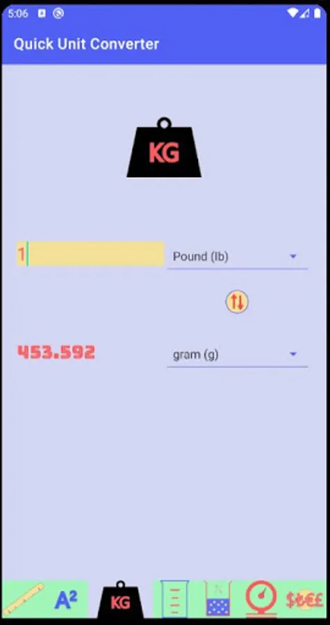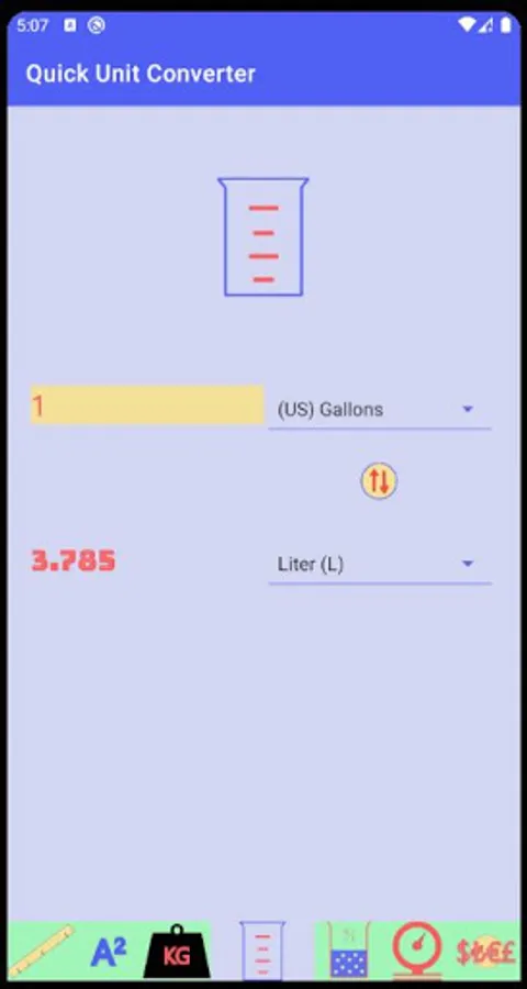 There is one data entry place and two selections. When you start typing, it will start calculating without any extra button.