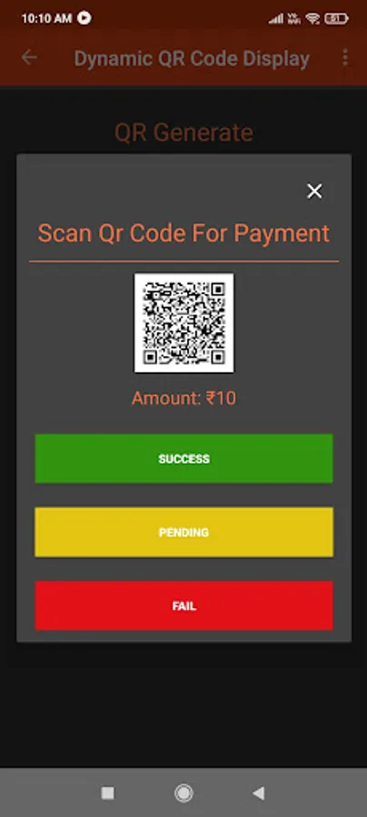 Android App provides facility to display Dynamic QR code on Display as per as amount entered by user and subsequent payment collection status like Success / Fail / Cancel