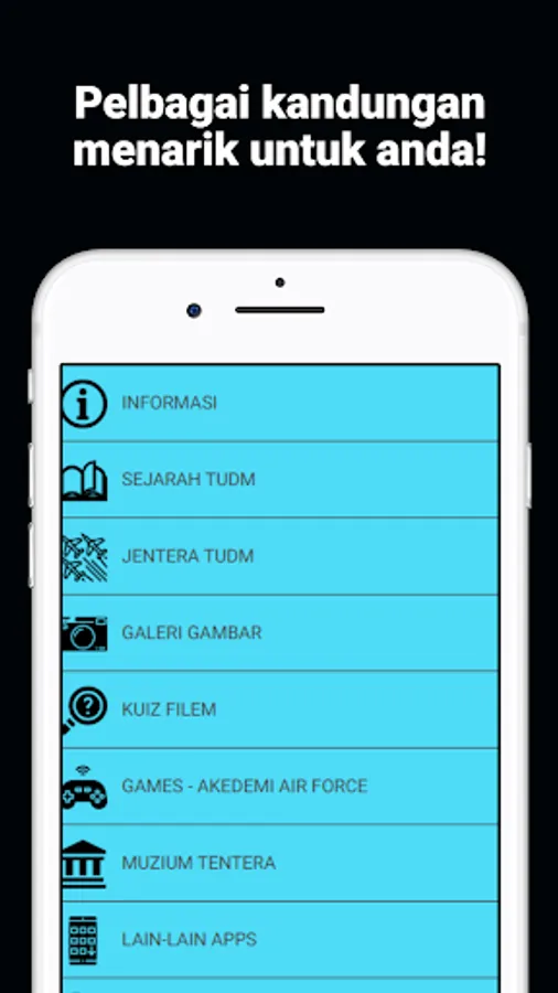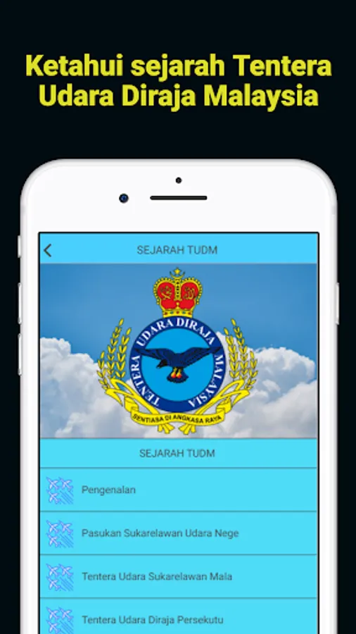 Apps ini mengandungi latar belakang tentang TUDM dan sejarahnya. Terdapat juga games untuk hiburan anda.