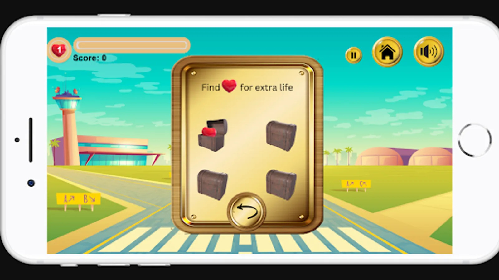 In Airport : UFO Rush you are assigned to shoot down as many UFO as possible before you get shot. You will be given 3 lives for each round. If you lose all 3 lives, you will be given the options to open one of the 4 chests. If you open the correct chest, you will be given extra live.