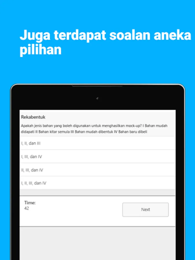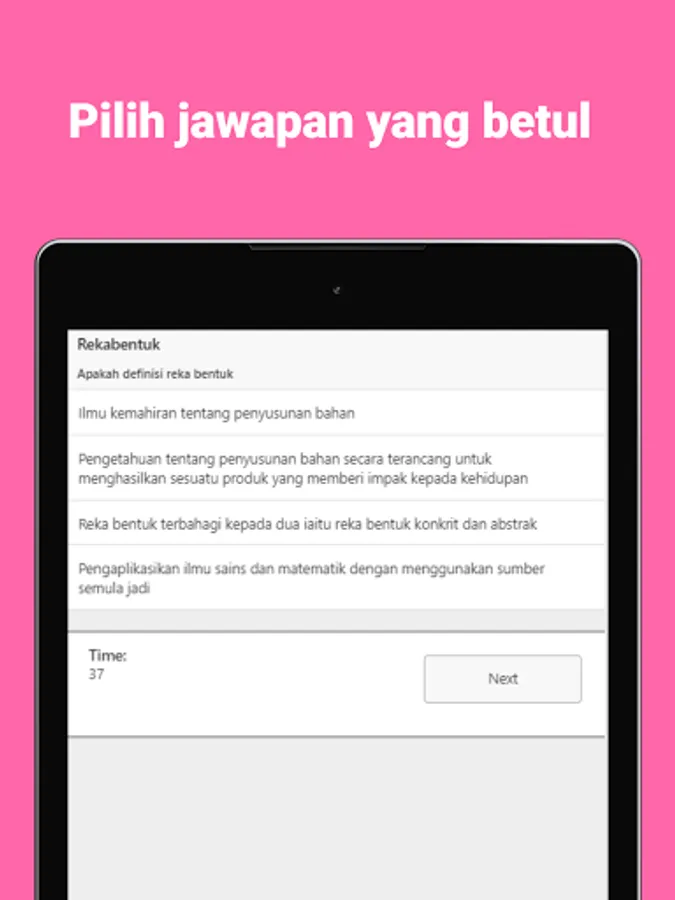 Aplikasi ini membolehkan pelajar tingkatan 1,2 dan PT3 sekolah-sekolah di Malaysia membuat latih tubi bagi menguatkan daya ingatan bagi mata pelajaran Rekabentuk & Teknologi. Merangkumi antara lain ; pengurusan projek, lakaran, sistem fetigasi, fesyen, reka bentuk teknologi, mekanikal elektrik, akuaponik dan teknologi makanan