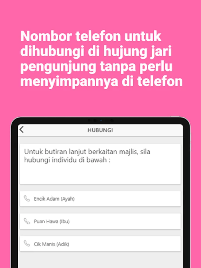 5) Hubungi - nombor telefon tuan rumah untuk dihubungi