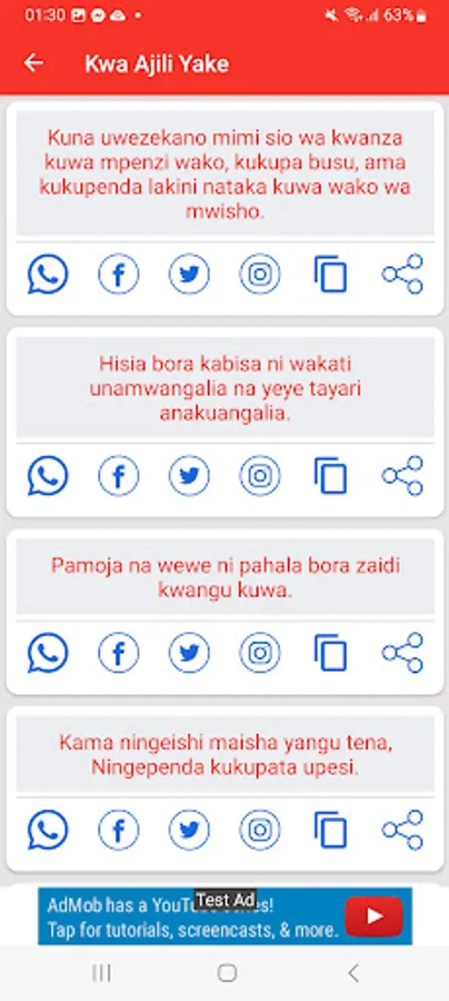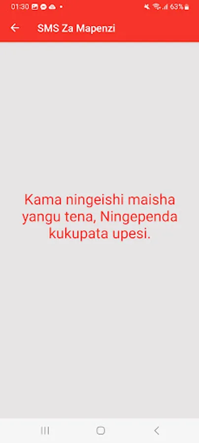 Pata sms moto za mapenzi za kiswahili. Ikiwa una mchumba ambaye ungependa kumwambia maneno matamu ya kumfurahisha, basi utazipata kwenye app hii. Ukitaka kumwandia maneno mazito yenye mapenzi ya kila aina. Ikiwa unataka meseji za kumbukumbu ya siku mliopatana au ya ndoa, app hii iko sms kamili ya kumwandikia mpenzio. Kuna sms za siku ya kuzaliwa pia, meseji ya kumwandikia mpenzi wako kwa siku aliyozaliwa. Isitoshe, Kuna meseji tamu za kumwandikia mpenzio iwapo mmekosana, sms hizo zitampea maana ya kukusamehe. Ukitaka kumwambia mwenzio jinsi unavyomkosa, basi tunazo hizo meseji kwa wingi.
