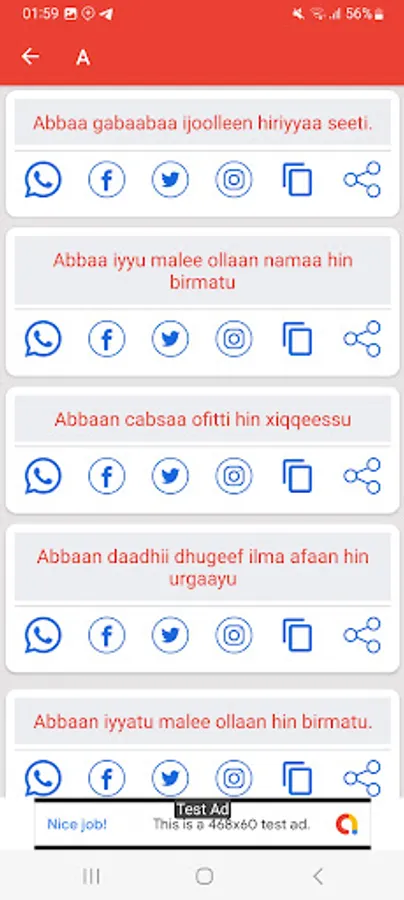 Share the beauty of Afaan Oromo wisdom with friends, family, and beyond. Our app empowers you to spread the richness of Oromo culture by easily sharing your favorite proverbs on social media, messaging apps, and more.