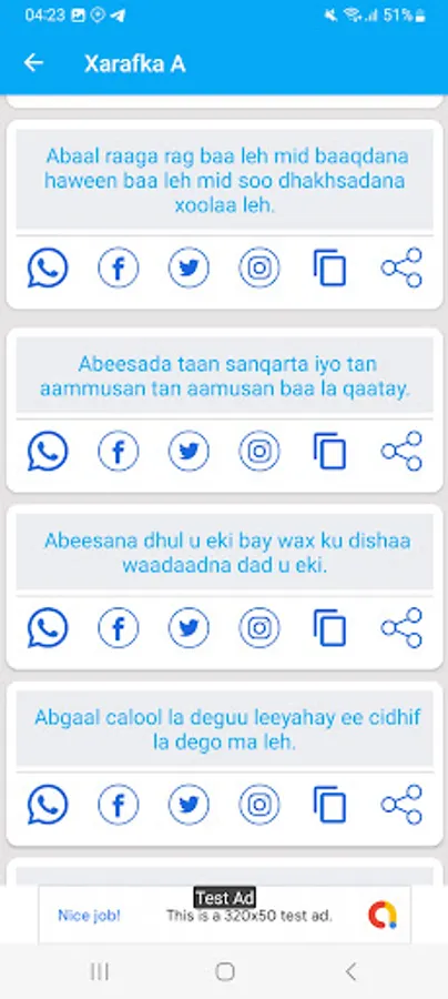 Share the beauty of Somali wisdom with friends, family, and beyond. Our app empowers you to spread the richness of Somali culture by easily sharing your favorite proverbs on social media, messaging apps, and more.