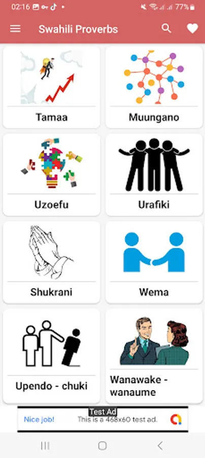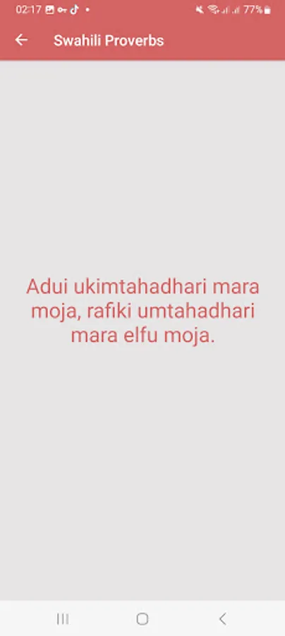 Our user-friendly interface allows you to seamlessly navigate through a diverse range of Swahili proverbs. With just a tap, you can explore proverbs that cover various aspects of life, from wisdom and family to success and perseverance.