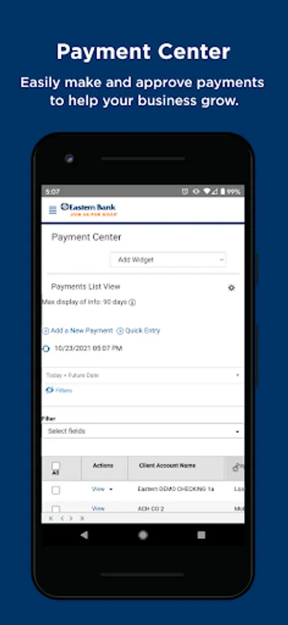 The Eastern Digital Banking for Business mobile app provides you with access to information you need.