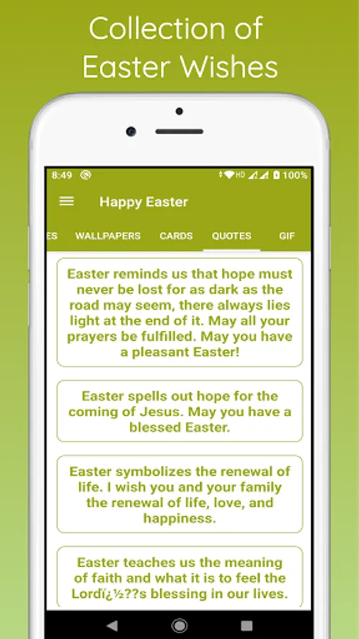Easter Cards & Wishes App is totally free. We Improve app based on user feedback & requirement. Also continually doing updating app to provide latest Easter Photo Frame, Cards, Wishes, Gif, Messages etc.