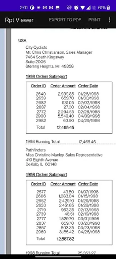 RPT Viewer enables you to open Crystal Reports file on Android devices directly . You can then print it out or export it to PDF easily.