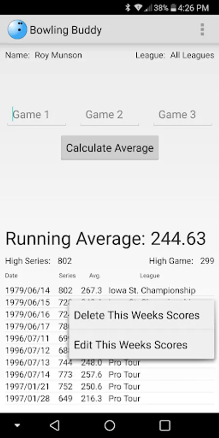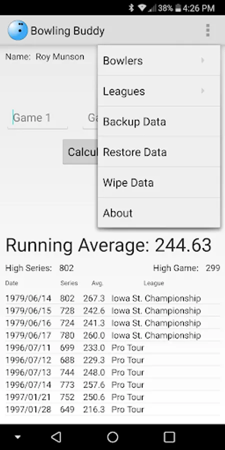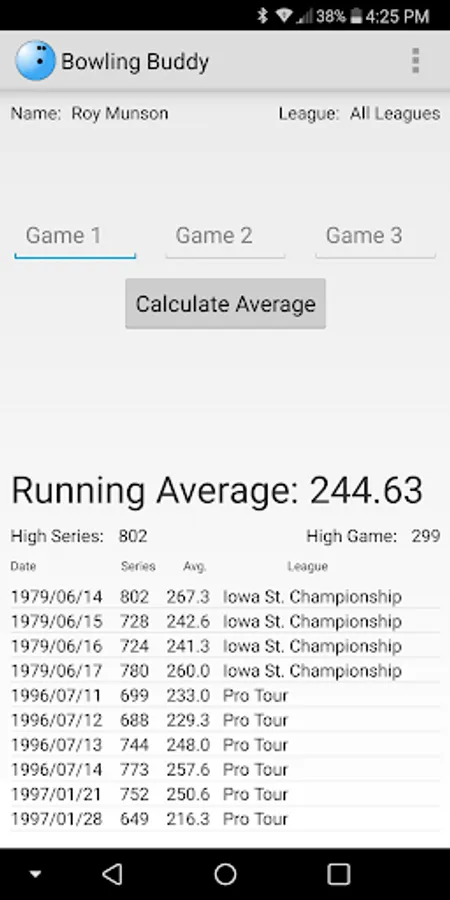 The occasional or league bowler can use this app to keep track of bowling averages for multiple bowlers and leagues.