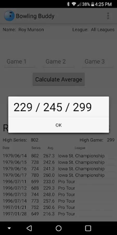 Keep track of your games, average, series, high game, high series for multiple leagues as well as all leagues combined.