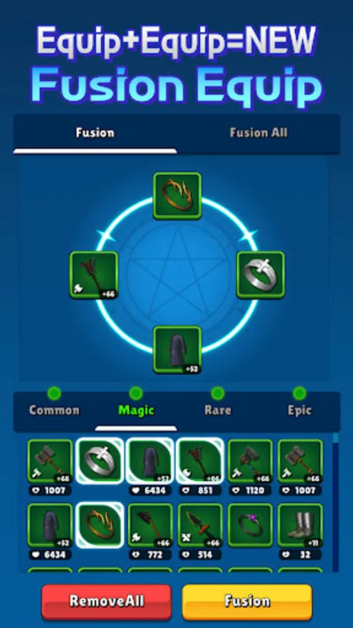 Try to acquire new equipment by Fusion a variety of extra Equip!