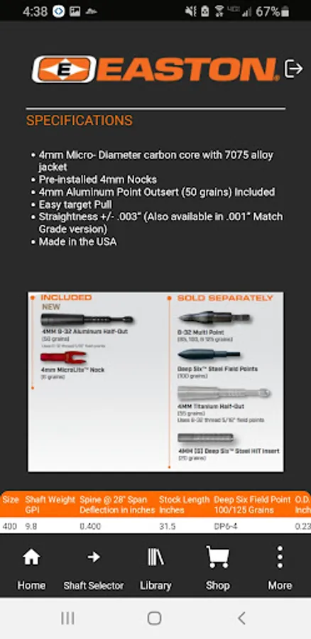 The Easton Archery app, from the leaders in arrow design since 1922, gives archers the tools they need to improve their archery experience. The app offers an arrow size selector to help archers find the right spine shaft for their bow setup, along with complete arrow and component product information to help archers prepare for hunting season or the tournament trail. An ever expanding media library offers a wide range of tutorial videos and articles to ramp up archery knowledge, helping archers to put more confidence in every shot.