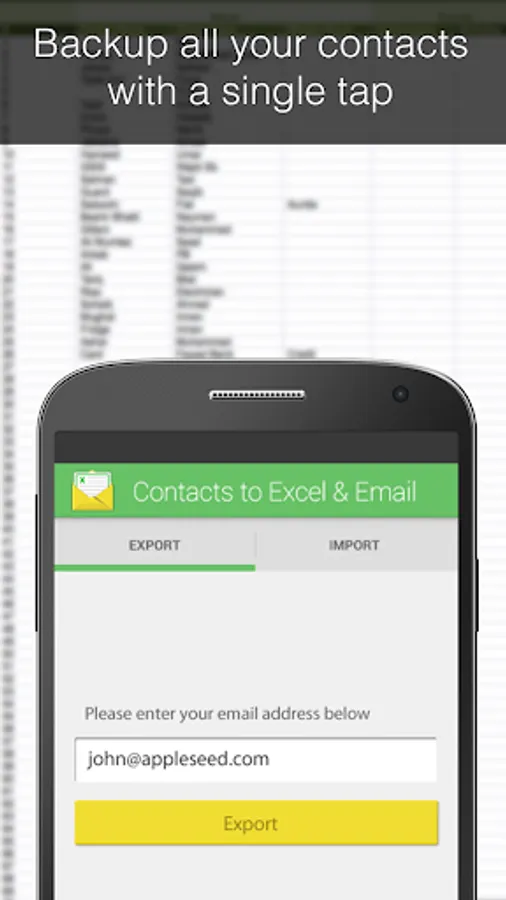 C2X (Contact Backup: Excel and Email) is an easy to use and a reliable tool for backing up your contacts. It reads all the details of your contacts and converts them to a beautiful Excel file, which is then sent to you by email.