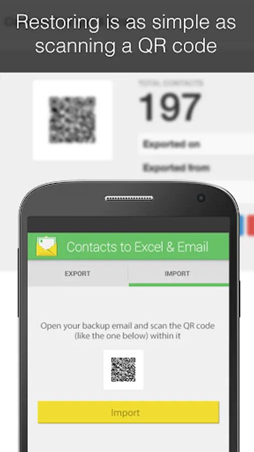 You can import (paid feature) your contacts back to your phone (android or iPhone) by just scanning the provided QR code within 7 days after that your QR code expires and you have to upload the backup Excel file at https://c2xv2.eastros.com/help to get a new QR code for import.