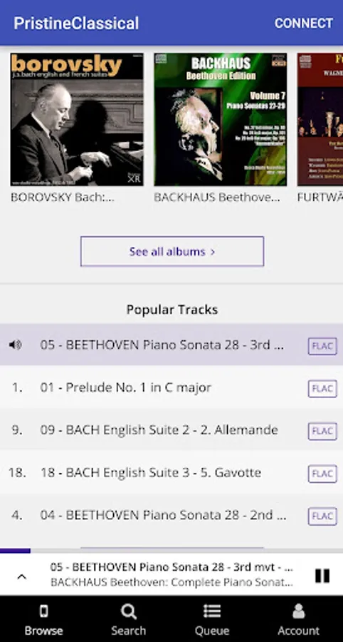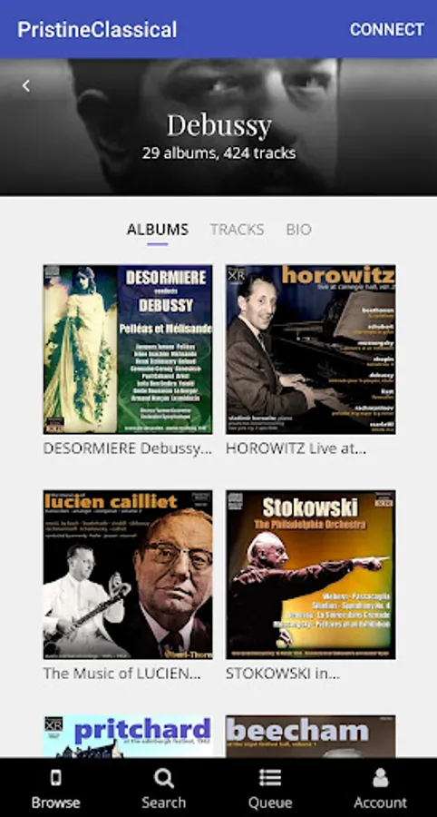 Listen to Pristine Classical's multi-award winning historic recordings of classical, jazz and blues music, streamed in high resolution master-quality FLAC or 320kbps MP3 direct from our own servers wherever you are on your phone or tablet. Offers thousands of tracks from some of the greatest musicians ever recorded - from Furtwängler, Toscanini, Callas, Schnabel, Horowitz and Heifetz to Miles Davis, Charlie Parker, Robert Johnson and Mississippi John Hurt, all restored and remastered and presented in astonishing sound quality. Stream to Chromecast and other audio devices.