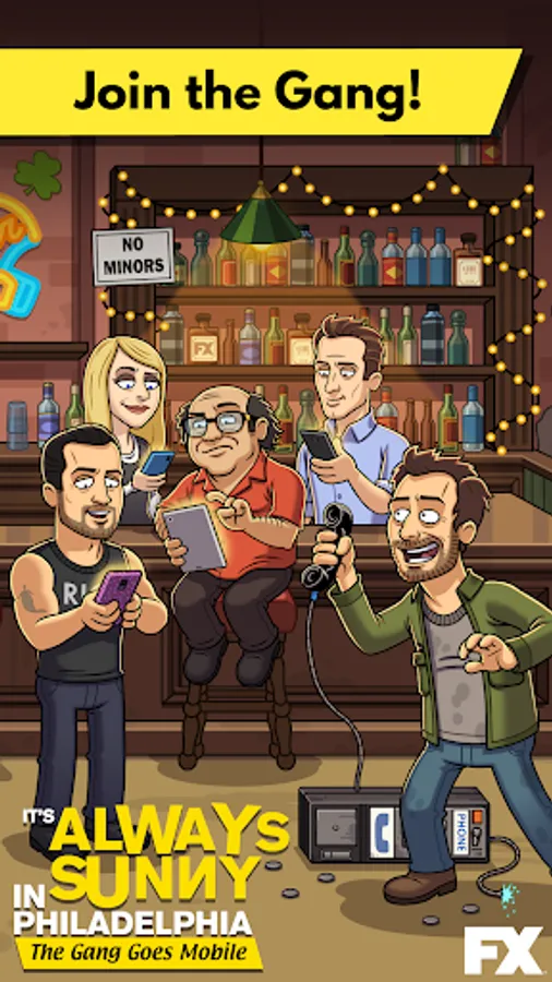 Tap through your favorite scenes from the Emmy® nominated, acclaimed FXX hit TV show IT’S ALWAYS SUNNY IN PHILADELPHIA. Go on hilarious adventures with your favorite characters and guest stars as they try to transform the worst bar in Philadelphia into the best bar! Build fun schemes that The Gang disguises as legitimate businesses, collecting cards and cash along the way.