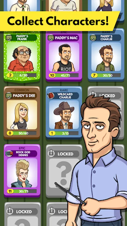 Tap through classic stories from the hilarious TV show and experience cringe-worthy new adventures - in a fun idle game style. Hang out with Mac, Dennis, Dee, Charlie and Frank behind the bar at Paddy's, in Charlie's apartment, under the bridge, and many more memorable locations from the TV show.