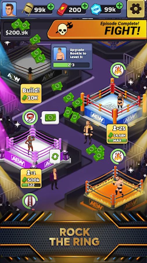 Become a part of AEW as you Rise to the Top on the hottest roster in the wrestling business! Go on tour with Dynamite, Rampage, Collision, House Rules and weekly special events. “All Elite Wrestling" Idle sports experience allows you to unlock all of your favorite wrestlers, upgrade and send them into battle to fight against classic AEW opponents, become part of the feuds as you enjoy custom storylines and championship feuds.