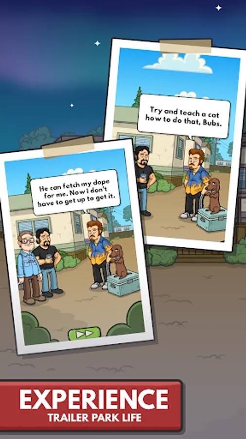 Featuring characters from the Trailer Park Boys tv show, follow the lovable rednecks as fun stories, adventures and games are added in the idle game adventure!! Time to tap your way to money, money, money!