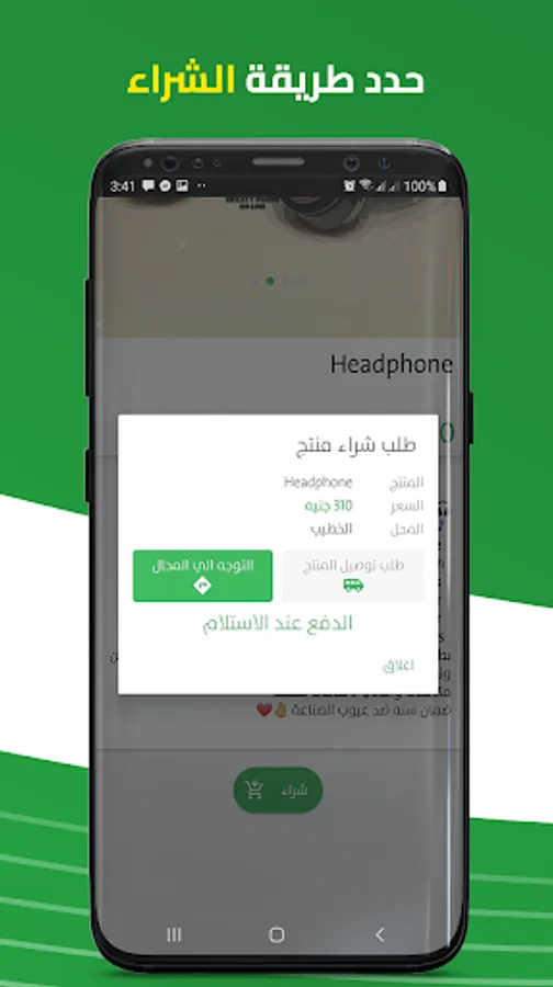 او تطلب من التطبيق يوصلك للمحل اللي فيه المنتج ووقتها تقدر تعاين المنتج بنفسك قبل الشراء