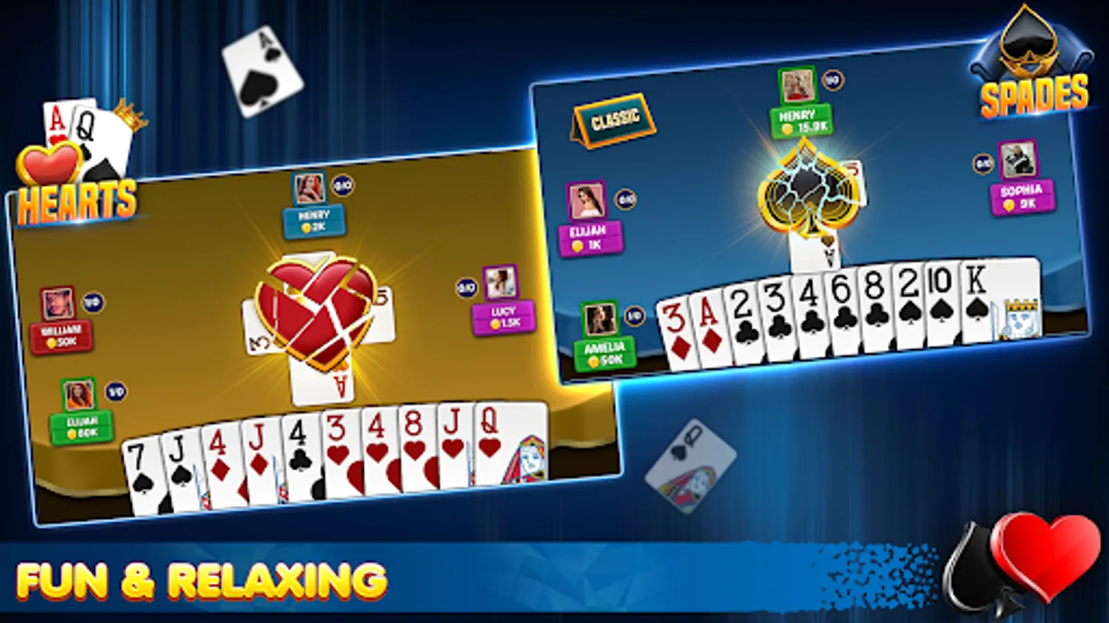 You can play Hearts offline card games without the internet connection. If you want to learn how to play Hearts, Hearts card games is easy and suitable for you. Train yourself with our AI and master at Hearts card game.