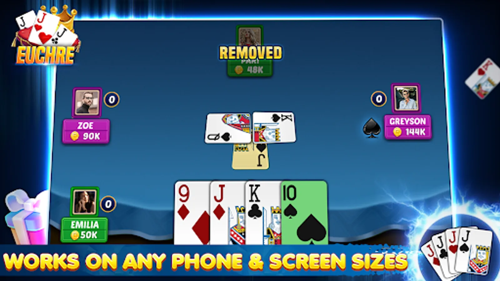 Euchre – the popular contract trick-taking card game for 4 players – is developed to the same high standard as the rest of our apps with an easy-to-use interface, smooth gameplay on all handsets, clear stylish graphics and individual CPU player “styles”. All you’ll ever need for Euchre!