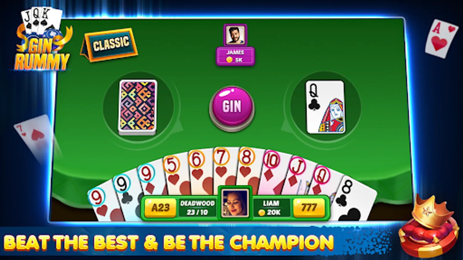 Gin Rummy Offline is a card game for two players, combining elements of the card games Rummy, Cribbage, Carioca and Euchre. The main contribution of our game is playing offline gin rummy with its bet and room structure. You never run out of coins. We always send you millions of coins as gift. By this way, you can always play in high-bet rooms.
