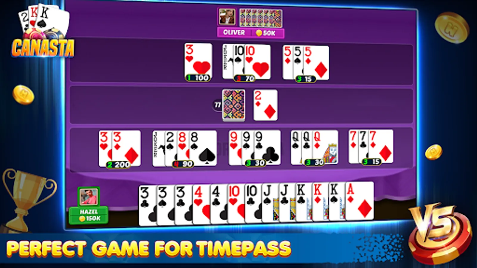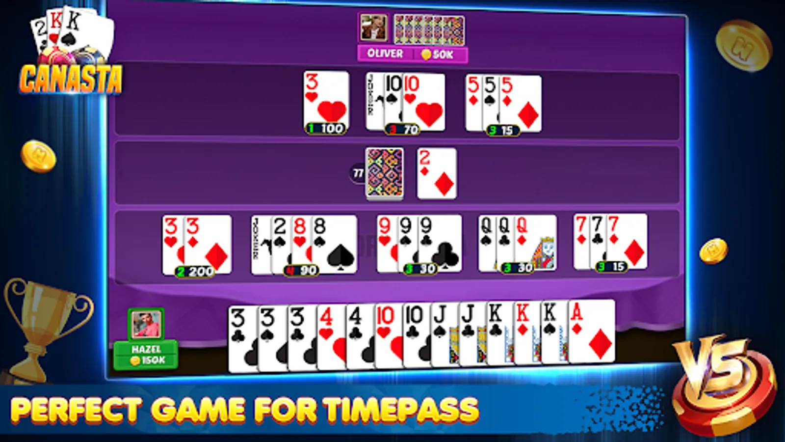 Canasta, the team-based tactical card game with tons of fun! Canasta requires above all brains and tactical skill. You can now experience it offline in this card game circle.