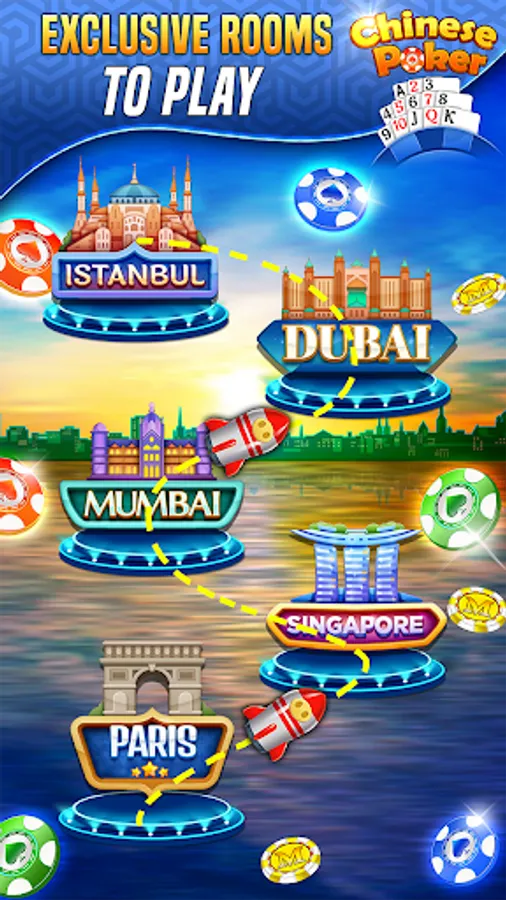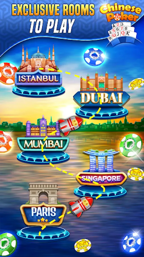 We have provided the list of scoring so you don’t have to remember all. Try to place your betting and win poker against AI in three in amazing locations around the world: Singapore, Las Vegas, Paris, and Macau casino. We will also provide you UNLIMITED FREE CHIPS when your balance is less than 3000.