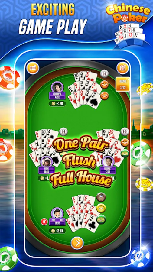 Be a Chinese Poker expert with Multiplayer and Offline Chinese Poker casino card game. Pusoy or Capsa Susun is a Thirteen Cards game similar to other casino games like Poker, Texas Holdem Poker, Flash or Flush, Three card brag!