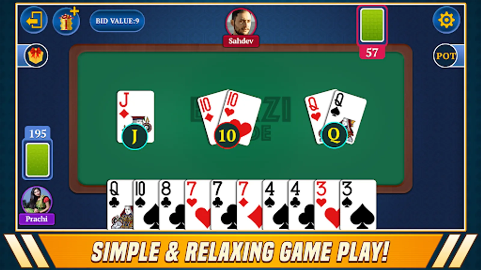 The aim of the game is to capture cards worth points from a layout on the table (also known as the floor). The game ends when one team has accumulated a lead of at least 100 points over the other team (this is called a baazi).