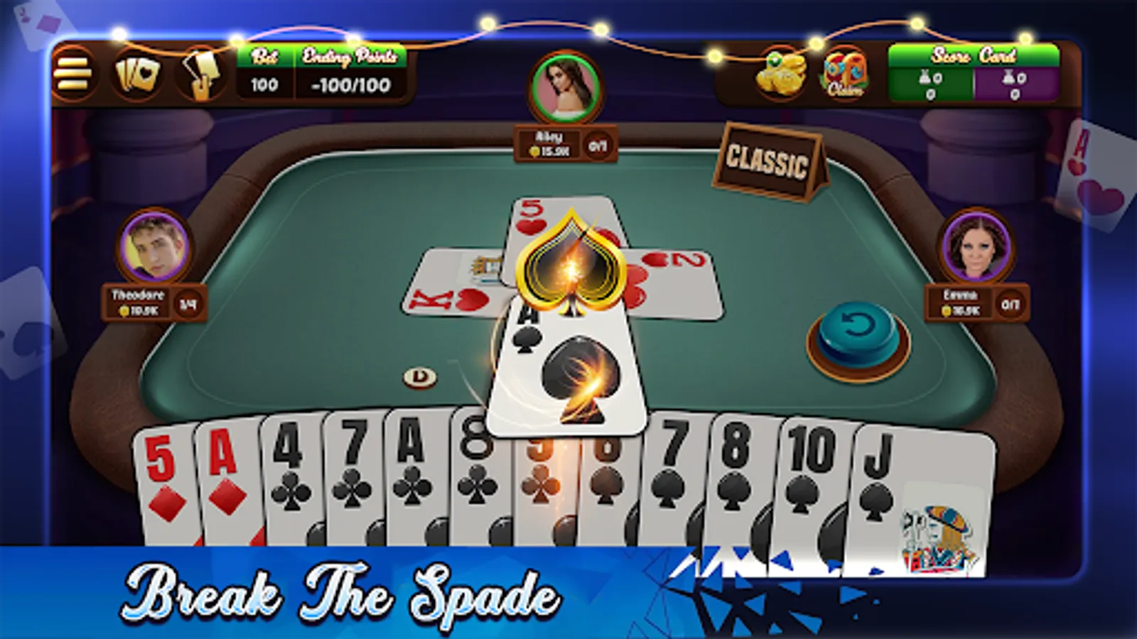 Take tricks, bid nil, and pass to your partner in the most complete Spades experience available for mobile.