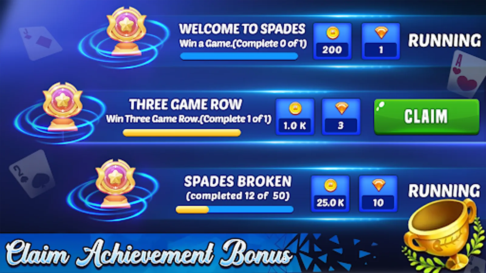 Spades has Achievements, Leader boards, Quests, Levels. Play and unlock achievements, complete quests and move to top rankings between millions. You can play ace of spades and also Spades Offline.