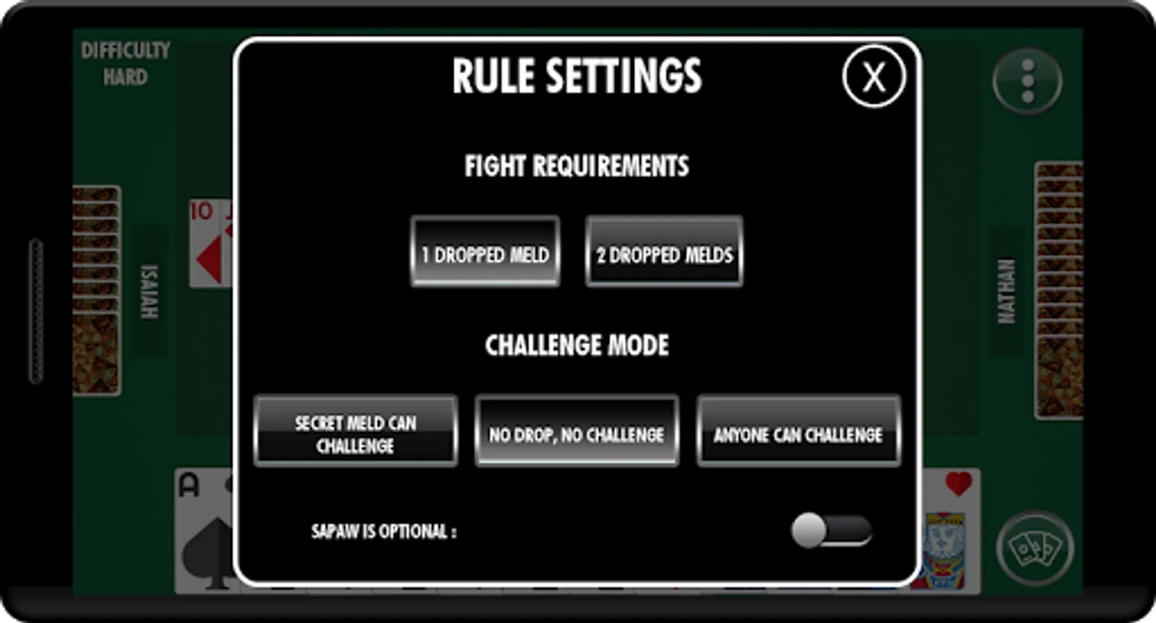 Laying off (sapaw) This is also optional. If you wish, you may add cards to sets or runs previously melded by yourself or others. There is no limit to the number of cards a player may lay off in one turn. A player need not have opened their hand to lay off. Laying a card off on another player's exposed meld prevents that player from calling Draw on his or her next turn.