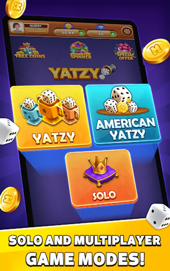 ▪️ Choose between 3 Play Modes: Solo, American Yatzy, and Yatzy