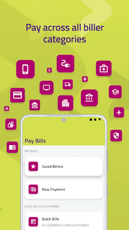 Manage your bank accounts conveniently and securely anytime, anywhere, using the EastWest Online the NEW EastWest Online Mobile app. Access your account and authorize your transactions with our new biometrics feature for safer and faster transactions. With over 170 billers, you can pay bills, transfer funds, auto charge via Quick Bills, view your account information, manage security settings of both your debit card and prepaid card, and send us a message – all from your mobile device!