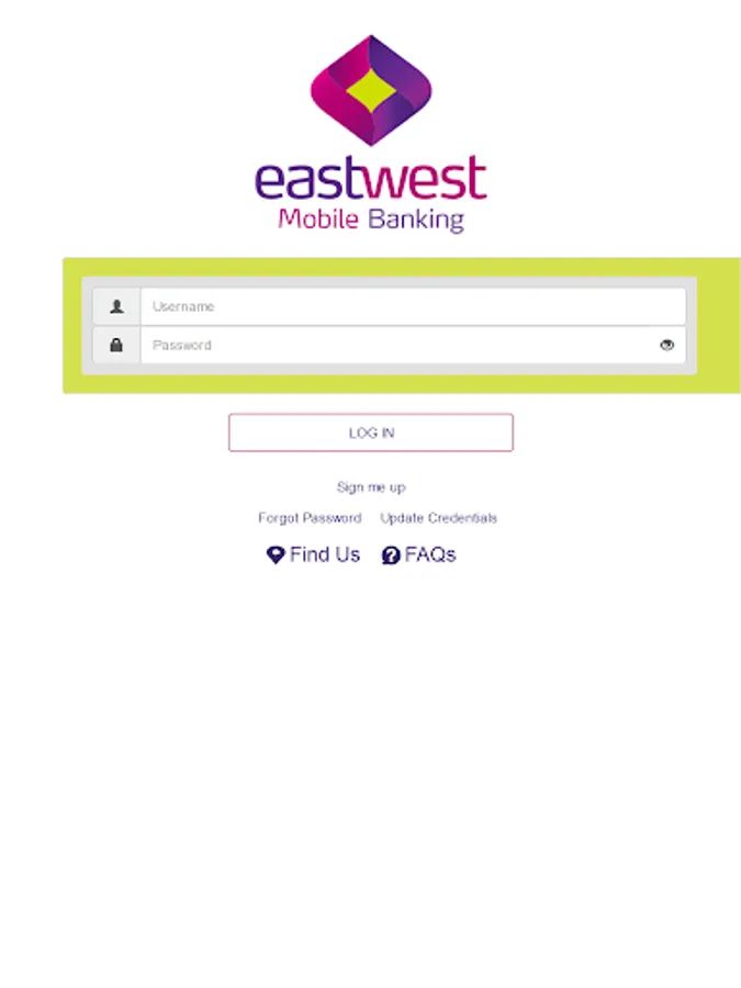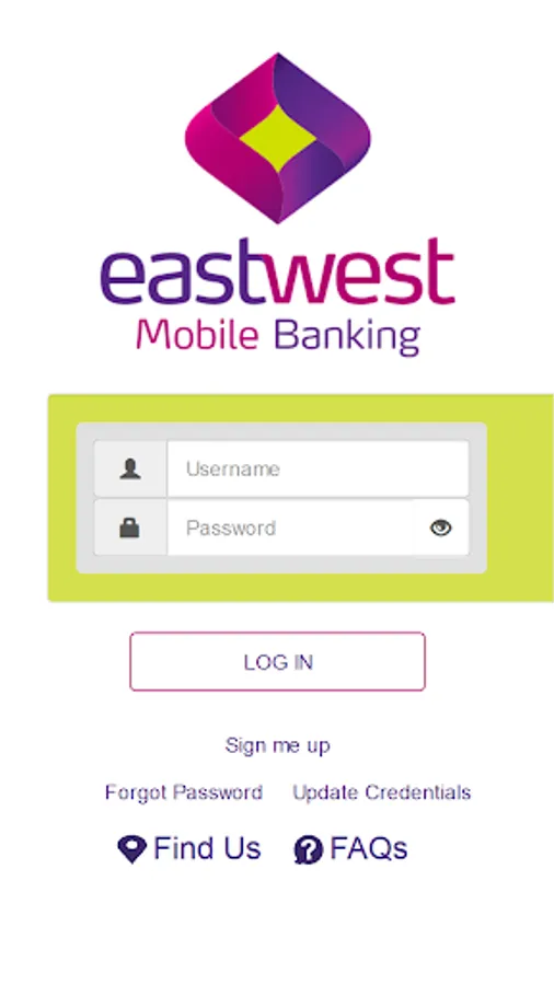Existing EastWest Online Banking Personal users simply need to log in with their Online Banking credentials to start using the app. For new users, self-service registration is easy and convenient through the "sign me up" function on the app's log in screen.